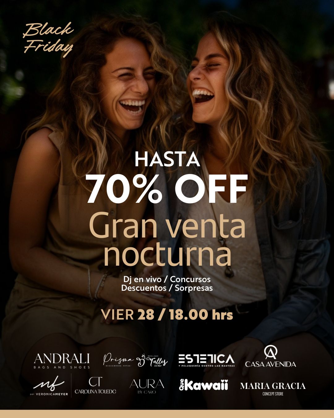 Además, este viernes 28 se realizará una venta nocturna de Black Friday, con descuentos de hasta 70% en diversas tiendas. La jornada contará con DJ en vivo, concursos y diferentes sorpresas para quienes asistan desde las 18:00 horas.