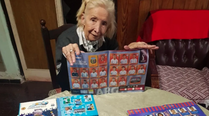 Una adulta mayor de Argentina invirtió todo el dinero que había recibido por su jubilación para comprar láminas y llenar el álbum del Mundial de Qatar 2022.