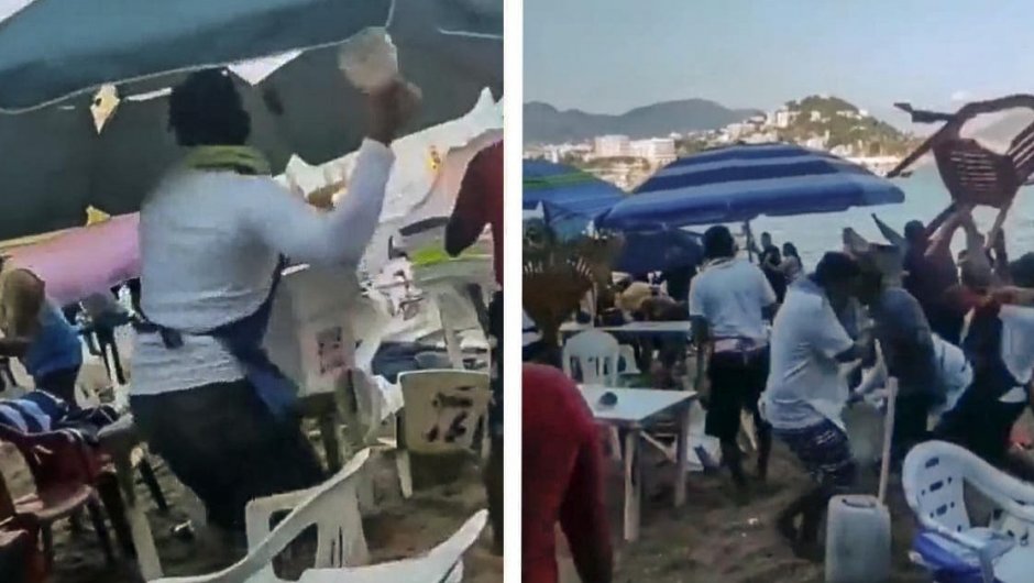 Meseros y turistas protagonizaron una pelea campal en playa de Acapulco