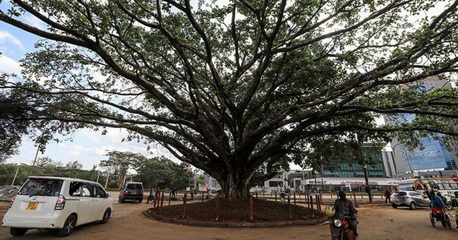 La higuera que echa sus raíces en la carretera de Waiyaki Way, iba a ser derribada por una empresa china que está construyendo actualmente una autopista para agilizar tránsito.