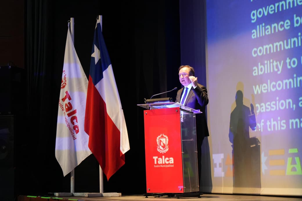 El alcalde de Talca fue el encargado del discurso de bienvenida, en el que destacó la historia y bondades de la ciudad y de la región. Además, la autoridad expresó que “quisimos dar la bienvenida con lo mejor de lo nuestro y como bien se decía acá, lo mejor de lo nuestro es nuestro folclore, nuestra música, son nuestros músicos, nuestras personas, nuestros vecinos y vecinas, así es que muy contento y bueno, ahora vienen ya los eventos deportivos, mañana tenemos un lindo desfile de carros alegóricos, la Fiesta de la Primavera recibirá también este gran evento mundial y el lunes ya partiremos ya con el puntapié inicial”.