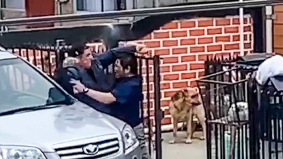 En el video se ve a uno de los agresores saliendo del domicilio para atacar al otro hombre que había llegado a encararlo. Este termina acorralado entre la reja y un automóvil que se encontraba estacionado en la calle.