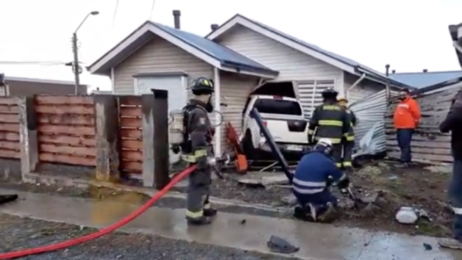 Camioneta quedó incrustada en el frontis de una casa en Puerto Natales