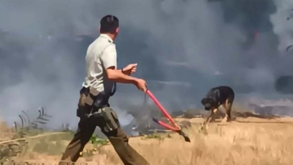 Carabinero salva a perro encadenado de un incendio forestal en La Araucanía