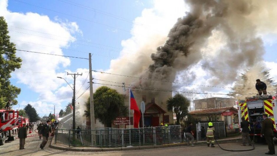 Incendio destruyó la iglesia de 80 años de antigüedad en Río Bueno