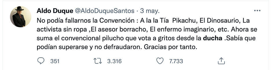 Este fue el hilo que utilizó el Convencional para pedir disculpas: