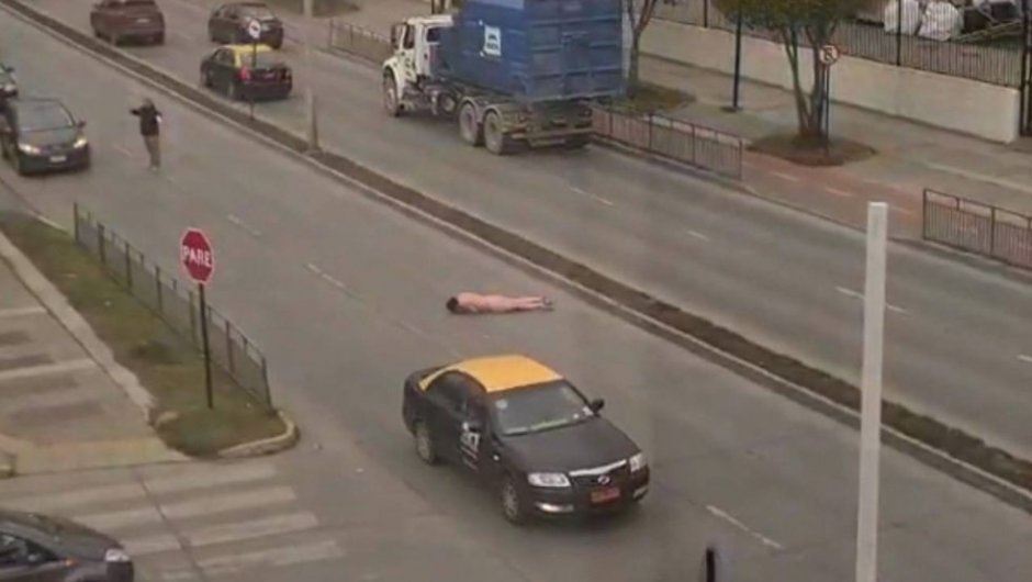 Durante lamañana de este miércoles 20 de abril, un extraño suceso se registró en la Avenida Costanera con calle Balmaceda en Punta Arenas, en donde transeúntes y testigos registraron con sus celulares a un hombre que circulaba desnudo por la vía pública, intentando abordar a cuánto vehículo circulaba por el lugar.