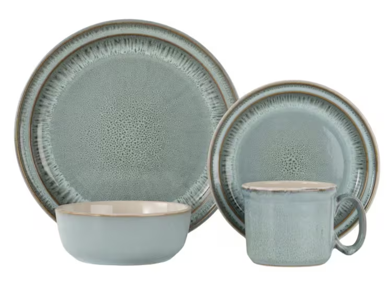 • Juego de loza 16 piezas cerámica verde — Modelo Tango