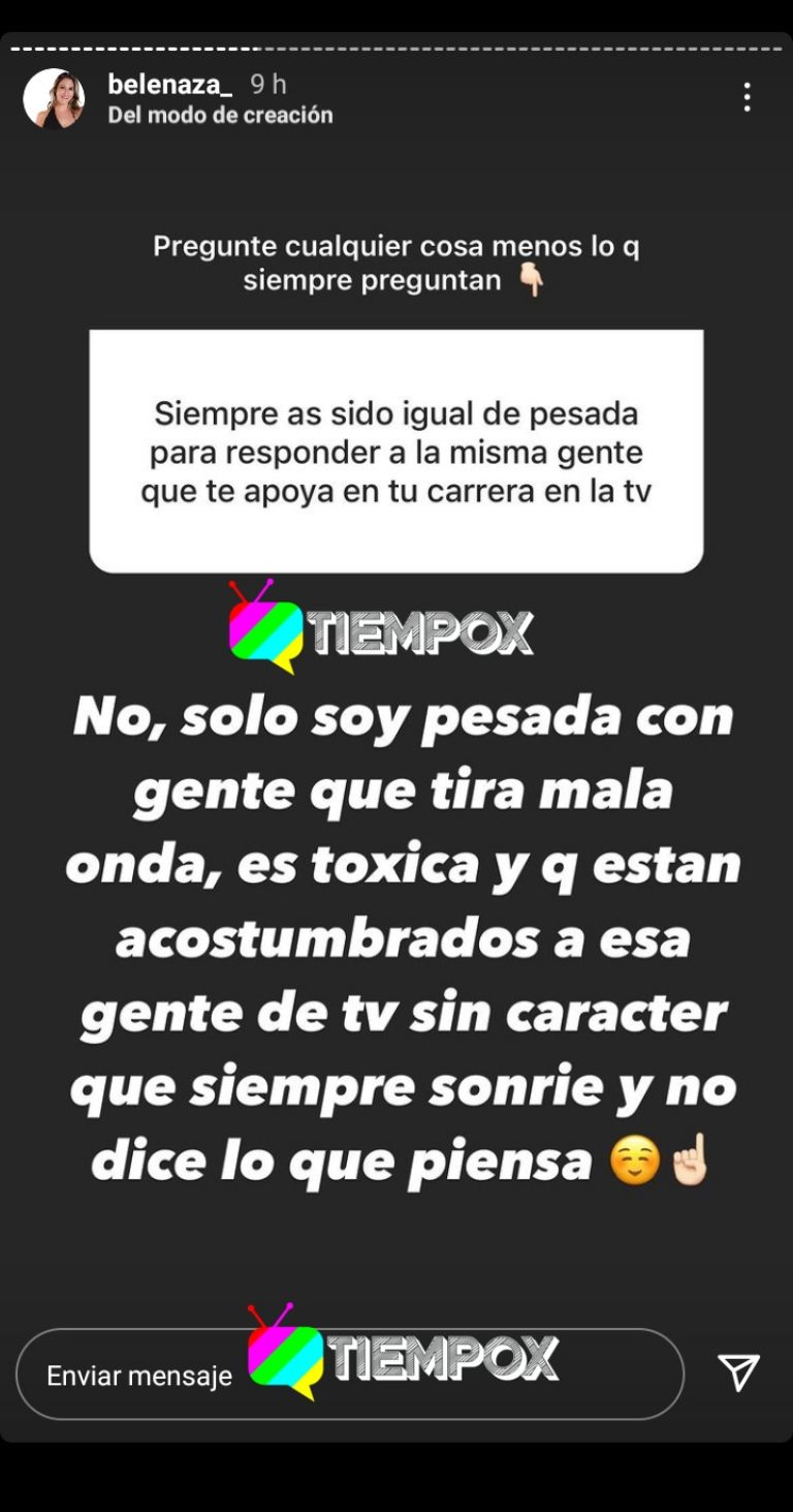 Ante la evidente crítica la conductora de “Políticamente Incorrecto” negó las acusaciones y aseguró, “soy pesada con gente que tira mala onda, que es tóxica, y que están acostumbrados a esa gente de TV, sin carácter, que siempre sonríe, y no dice lo que piensa”. Tras lo anterior otro comentario al parecer de la misma persona terminó por molestar a la comediante.