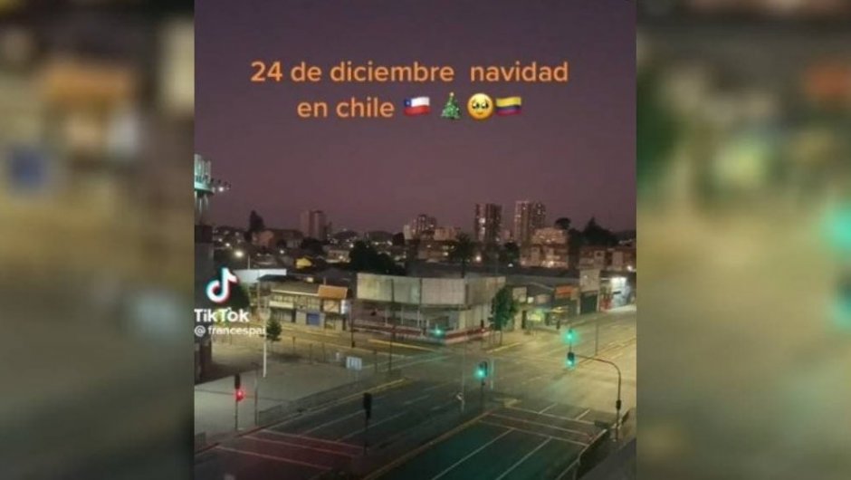 “Les voy a mostrar un poco de cómo se vive la Navidad acá en Concepción, Chile. Como se pueden dar cuenta hay muy pocos edificios alumbrados y no hay absolutamente nadie en las calles”, comienza en su relato.