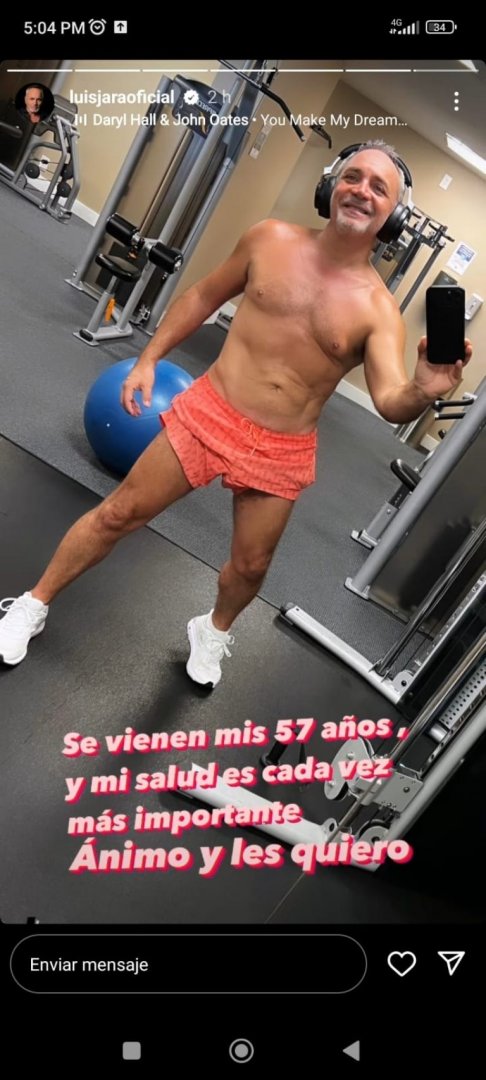 "Comencé el día a full y comienzo a ver los resultados y a sentirme con más energía", expresó Luis Jara en su cuenta de Instagram, esto antes de mostrarse sin polera.