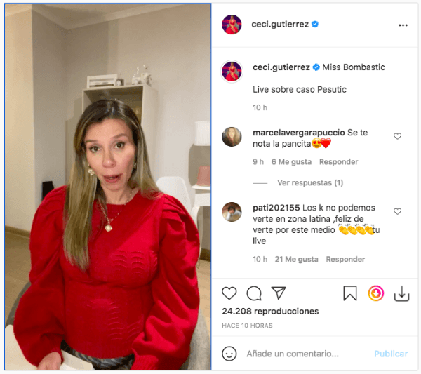 “Fue acusado a fines de marzo pasado de violencia intrafamiliar por parte de su señora, con la que estuvo 11 años, con la que tiene una hija de 5”, comentó Cecilia Gutiérrez la noche de este martes, en Instagram Live, respecto a Mauricio Pesutic.